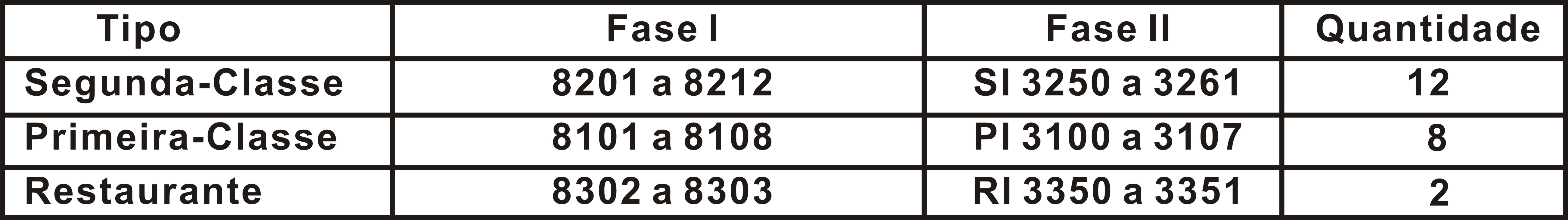 Inventário dos carros série 8000