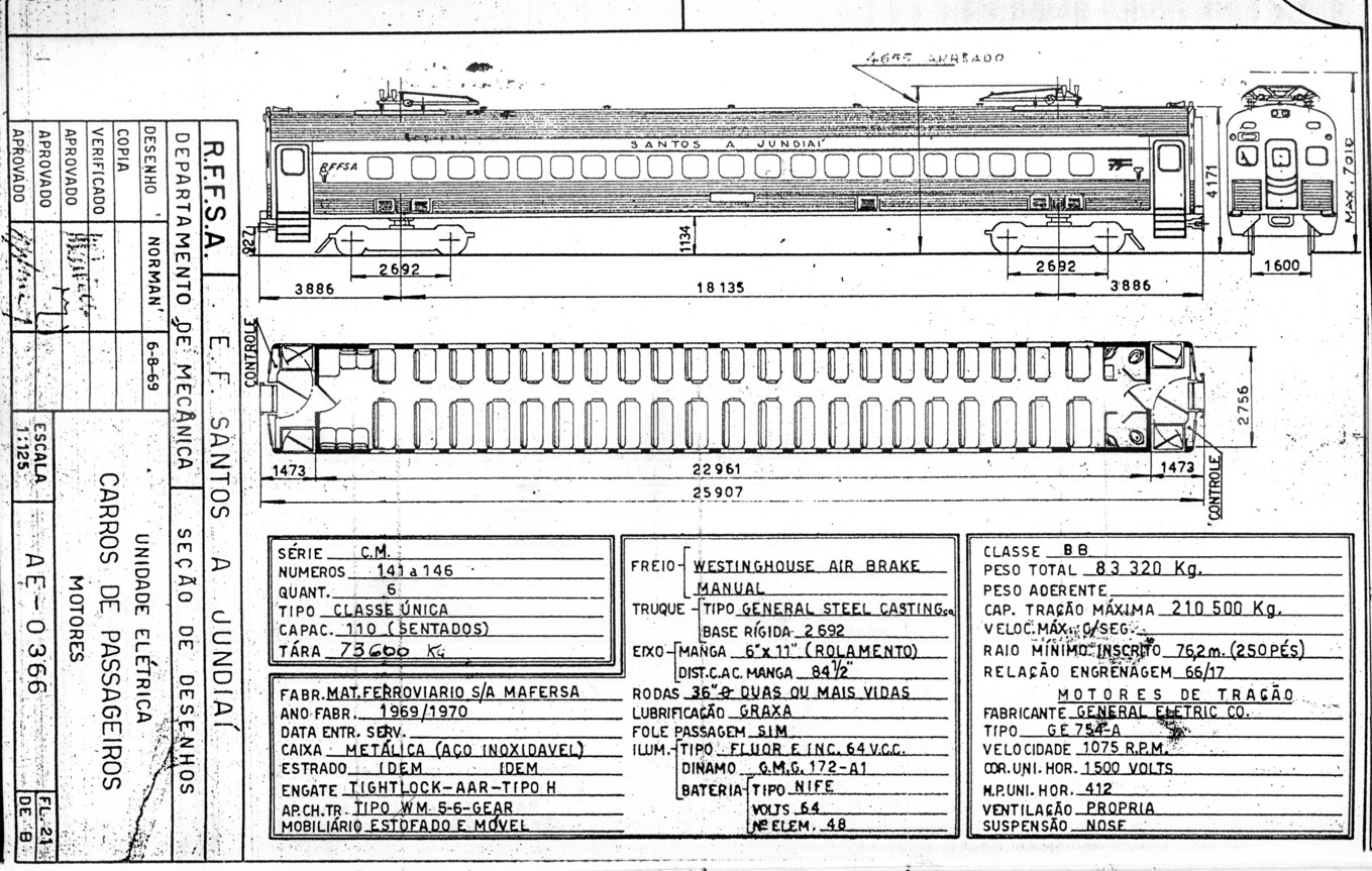 Trens Unidades Elétricos Budd - Mafersa da EFSJ - bitola 1,60 m