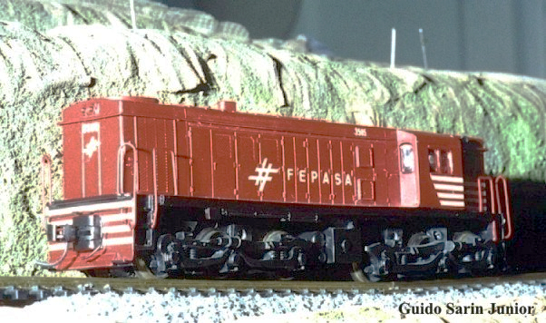 ABAIXO : locomotiva com o primeiro e o segundo padrão de pintura da FEPASA.