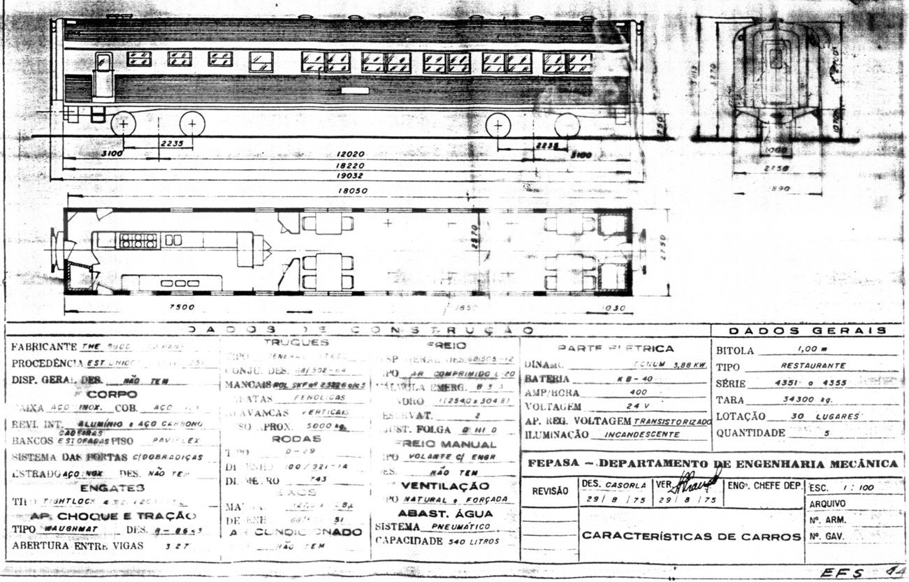 Carros de passageiros The Budd Company - Fases I e II, bitola 1,00m