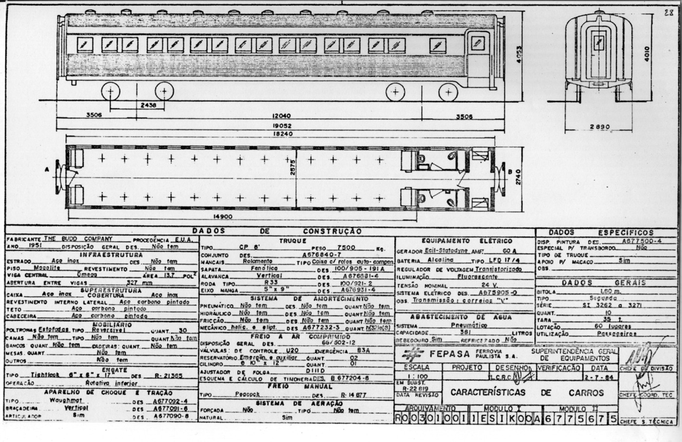 Carros de passageiros The Budd Company - Fases I e II, bitola 1,60m