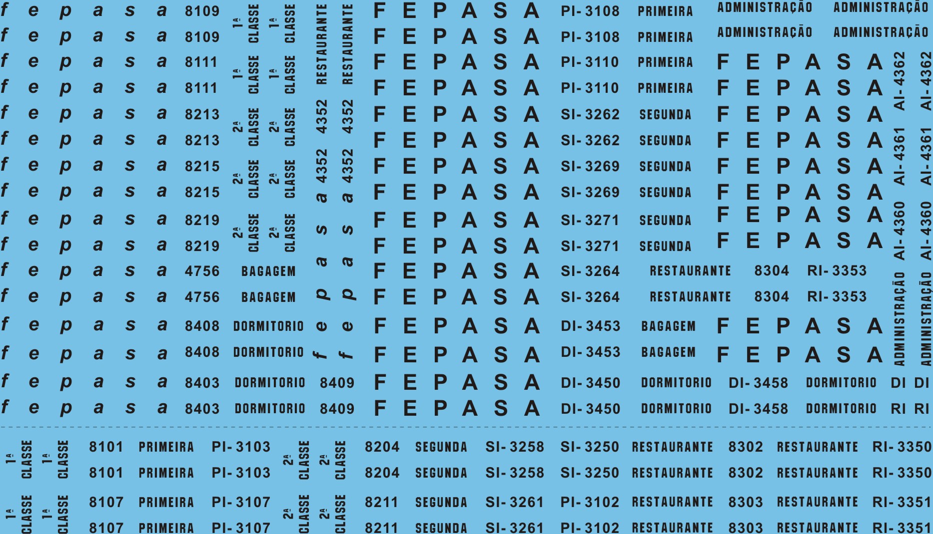 - Os decalques para a primeira fase da Fepasa também podem ser aplicados nos carros de madeira.