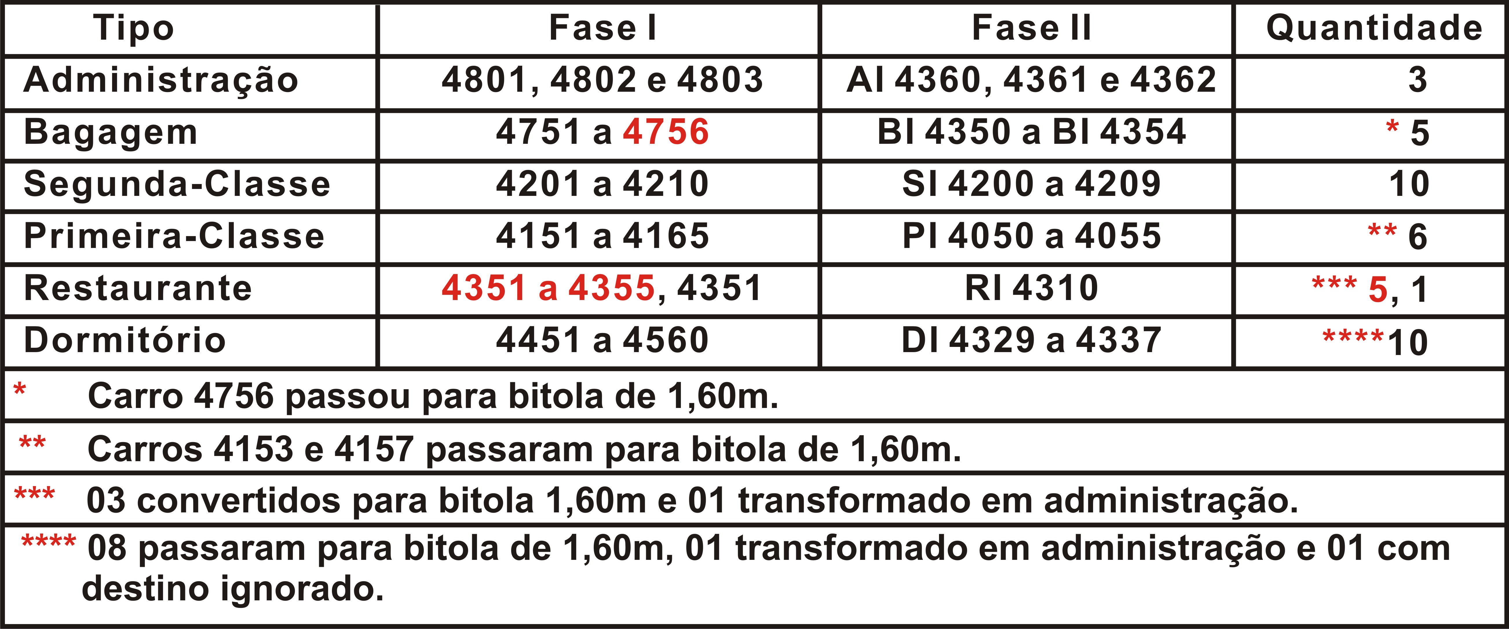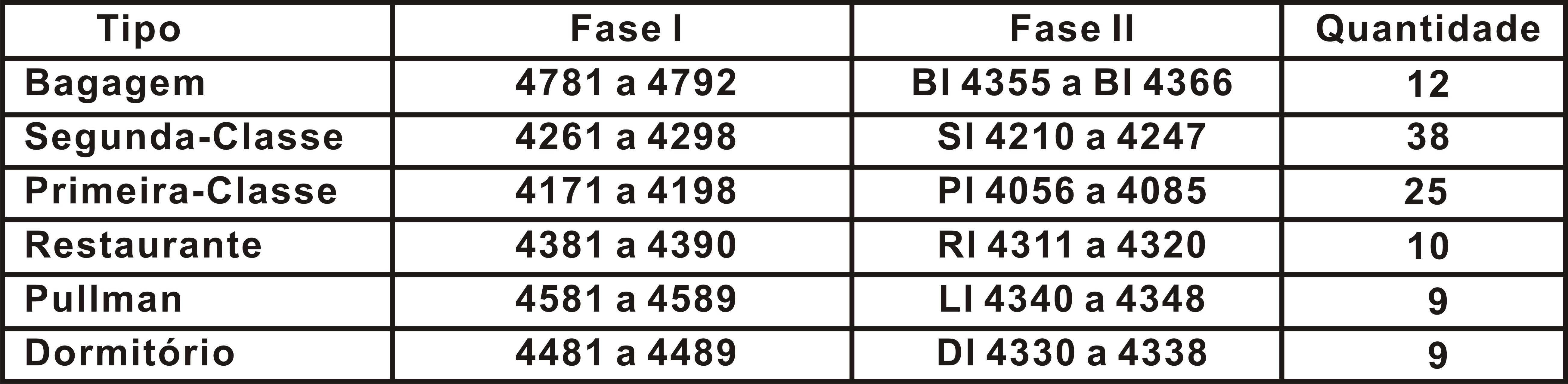 Inventário dos carros série 800
