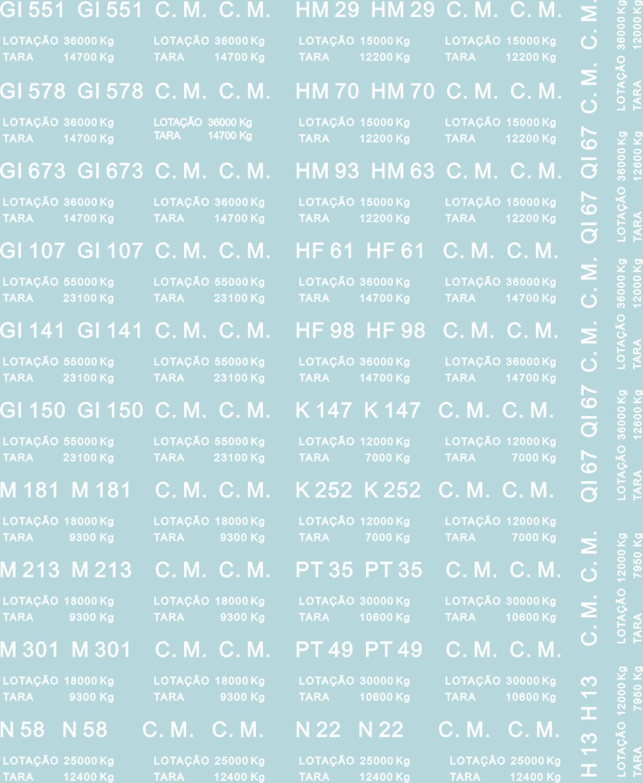 Na folha de decalques retirar a letra "G" dos vagões: GI 551, GI 578 e GI 673. Estes vagões são da série "I".