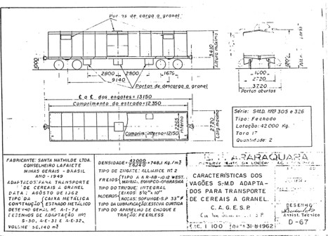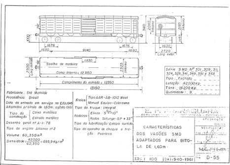 Vagões Fechado metálico série S - IE 1001 a S - IE 1250