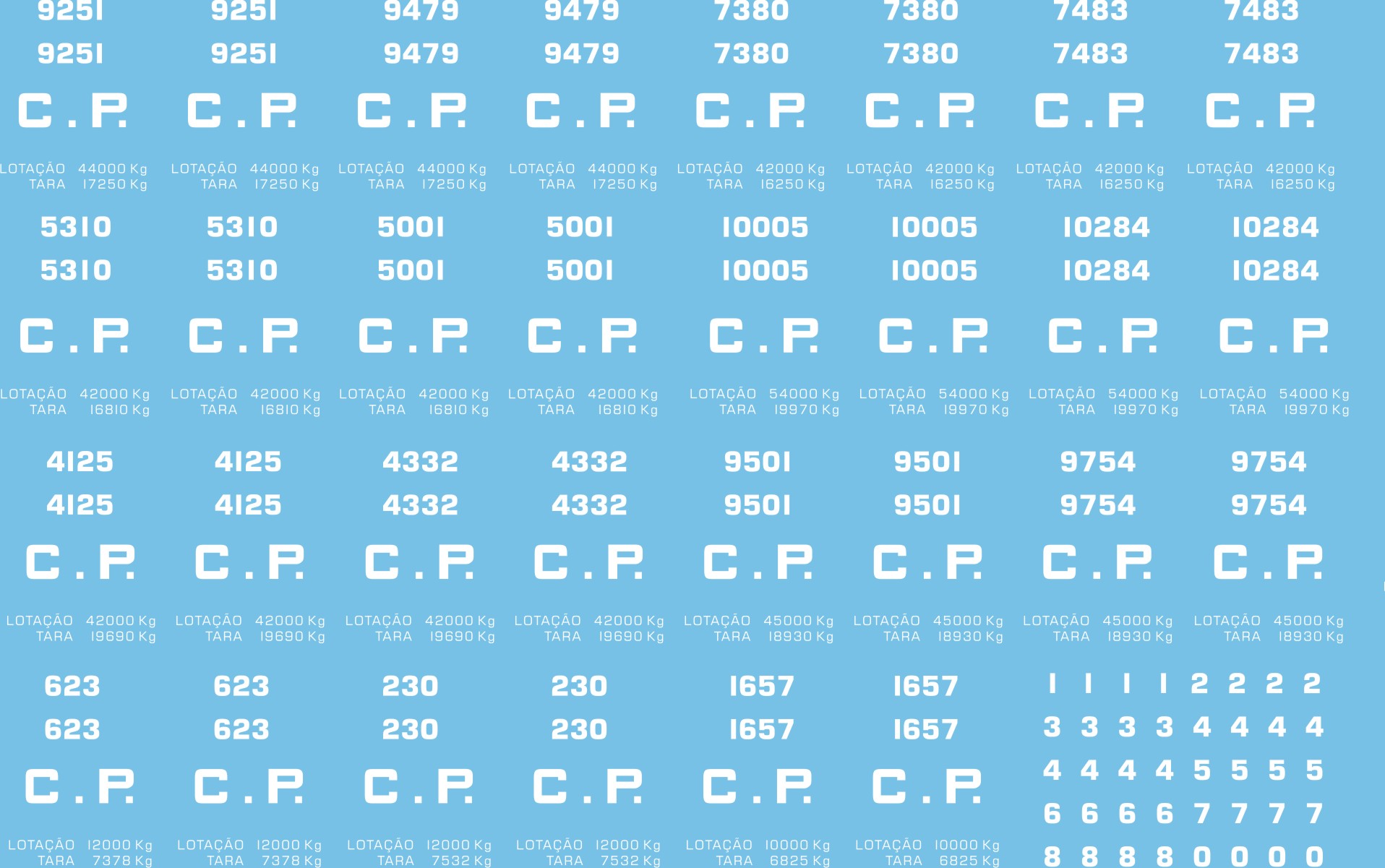 - Numeração pré-definida para 12 vagões da bitola 1,60 m e 03 vagões da bitola métrica.