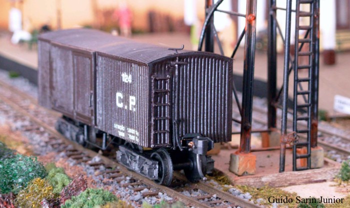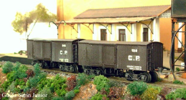 ACIMA: vagão fechado em madeira para a bitola métrica, na versão da Cia. Paulista, produzido pela